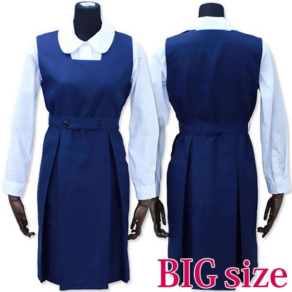 憧れの超名門女子校の制服にBIGサイズが新登場♪シンプルながら洗練されたデザインでお嬢様度が高く、ウエストのベルトが特徴的!セット内容は前ボタン式のブラウスにジャンバースカート、ベルトと充実♪学園祭の催し物などにもおすすめのコスプレ衣装です。
