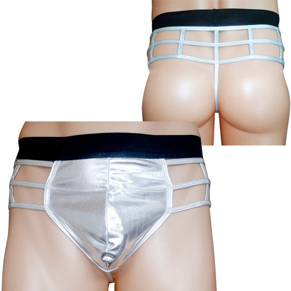 対極にある「隠す」と「見せる」をバランスよく釣り合わせたセクシー下着!目が眩みそうなシルバーのきらめきと肌見せ感で、男の色気をたっぷり引き出します。