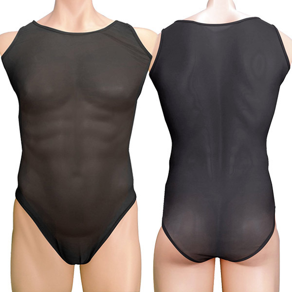 ●「DANDY CLUB」シリーズNo.63●透け感がセクシーなブラック地●ノースリーブ&フルバックタイプ●男性用フリーサイズ。