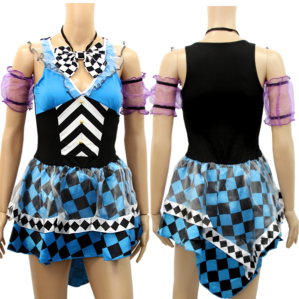 さらに、マッドハッターの特徴でもある「10/6」ミニハットと首リボン、シースルーのアームバンドもセット!絶妙な色使いで魅せる女性版マッドハッター風のハロウィンコスチュームです。