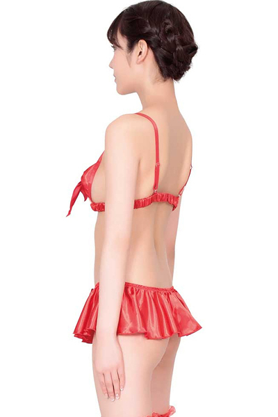 カラダを魅力的に盛りたい時に、絶妙なバランスでボディラインをアピールしてくれる、真っ赤なリボンが大人エレガントなブラセット!柔らかな手触りでふんわりとカップを包み、胸の色気をアップ。