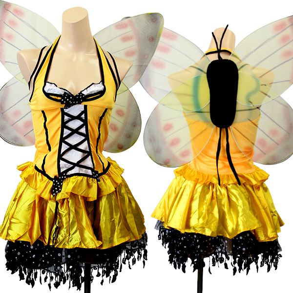 カラフルで大きな蝶々フォルムの羽付き♪セクシー&キュートなミツバチ風のコスプレ衣装。