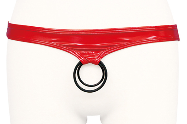 光沢感のある赤いエナメル素材が気分高める2連リング付のメンズショーツ。フリーサイズ●メーカー型番:MENG-017