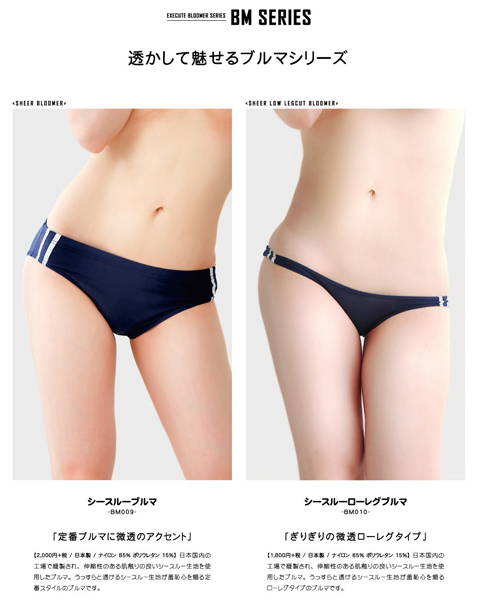 安心の日本国内の工場で縫製され、伸縮性のある肌触りの良いシースルー生地を使用したブルマ。うっすらとお肌が見えるシースルー生地が羞恥心を煽る定番スタイルのブルマです。